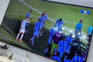 迪马利亚通过电视观看了阿根廷U20的比赛,他在社交媒体上晒出照片,配文:“干得漂亮,小伙子们,继续追逐梦想!”